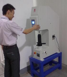 布氏硬度计之压头为淬硬钢球(HBS)或硬质合金球(HBW),试验载荷随球直径不同而不同,从3000到31.25公斤力。